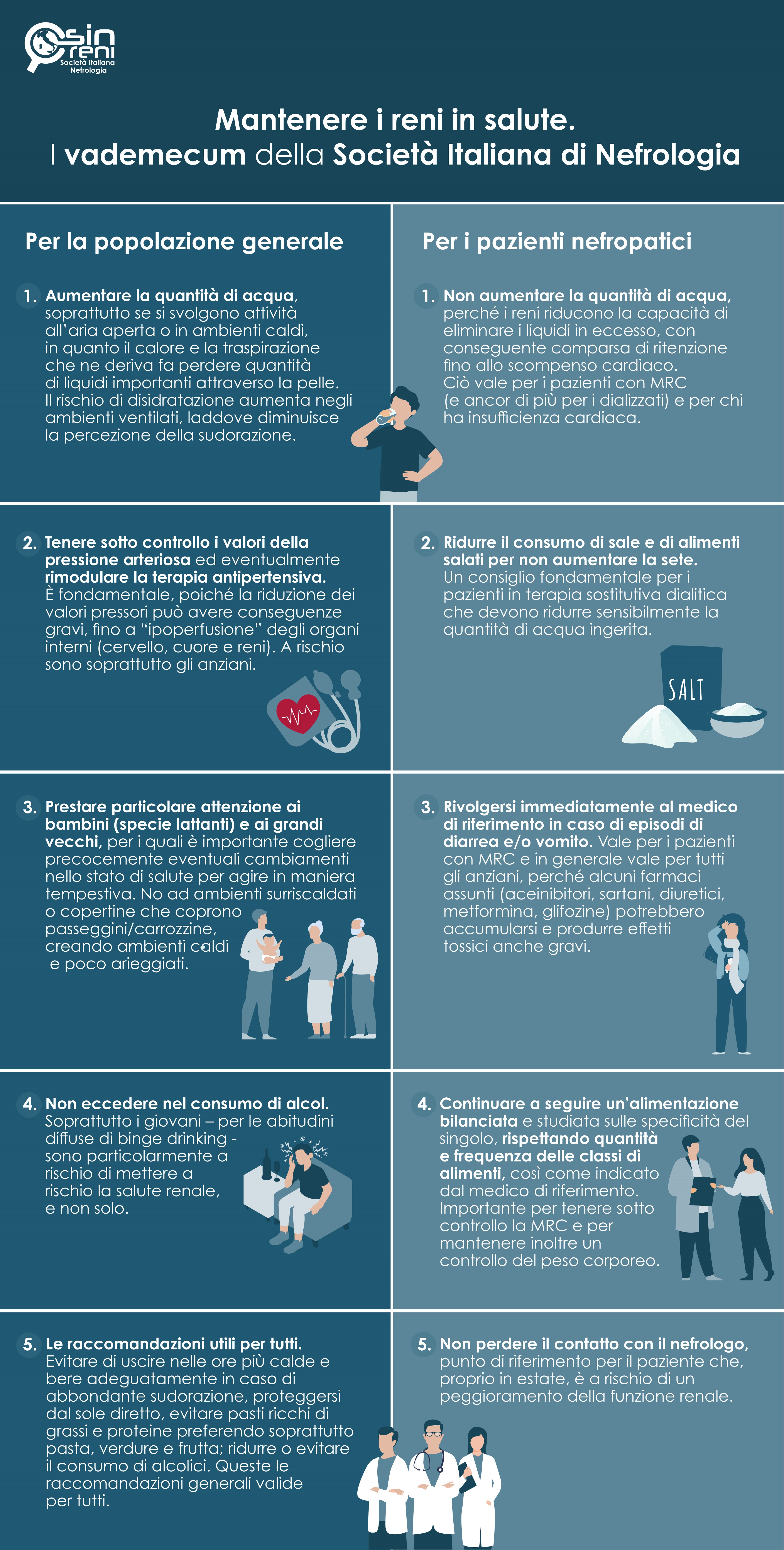 È con il vademecum per la salute dei reni che la Società Italiana di Nefrologia indica alla popolazione una routine ottimale da seguire per salvaguardare la salute dei nostri reni.